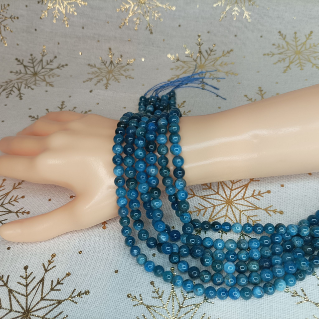 Apatite Bleue / Fil de Perles en 6 mm / Boules en Pierres Naturelles Rondes et Polies